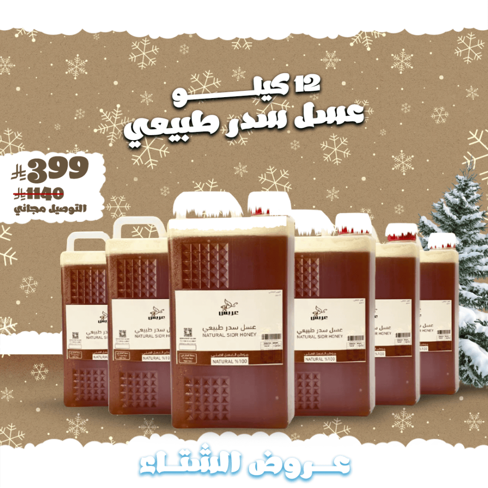 12 كيلو عسل سدر طبيعي جودة نادرة عرض لفترة محدودة.توصيل مجاناً لجميع مدن المملكة.ضمان ذهبيمجاز من هيئة الغذاء والدواء والجمارك عند الاستيراد.مفحوص مخبرياً من مختبر معتمد بالرياض من المركز السعودي للاعتماد.