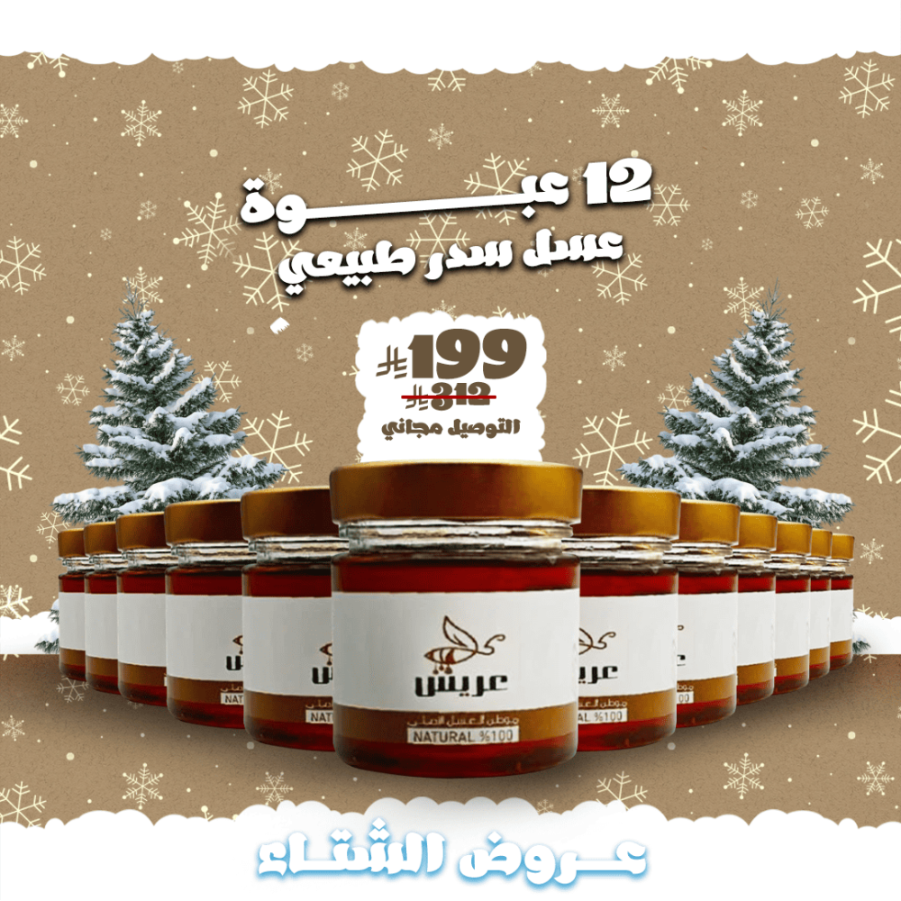 عرض التوفير : 12 عبوة عسل سدر طبيعي نادر